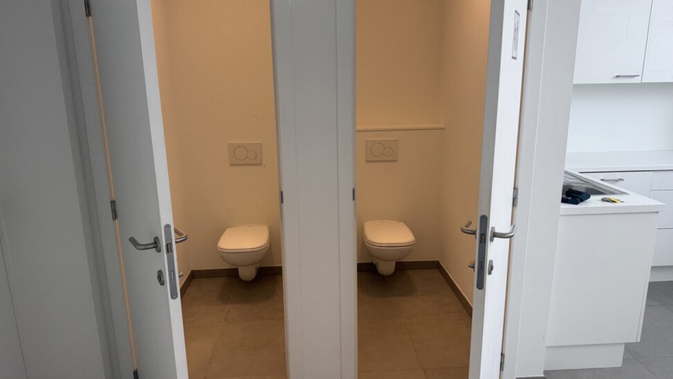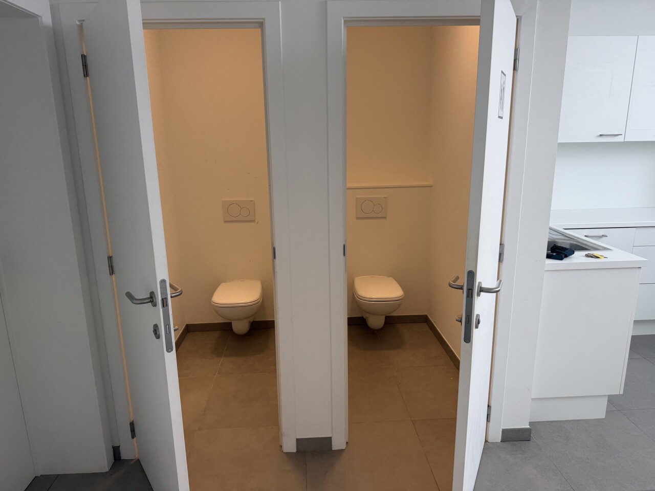 Achteraan bevindt zich een bijkomende ruimte van ca. 20 m², uitgerust met twee toiletten en een keuken. Deze aparte zone is ideaal als pauzeruimte of personeelsruimte, afgescheiden van het handelsgedeelte.