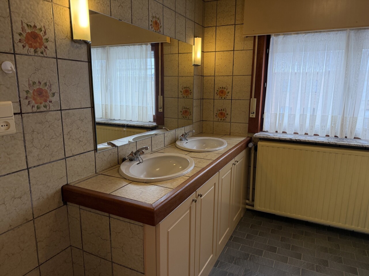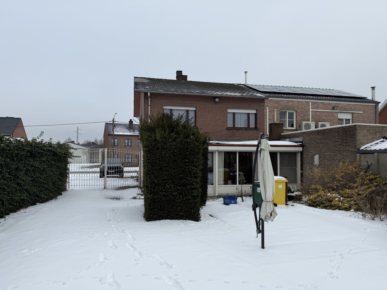 De woning beschikt over drie volwaardige slaapkamers, een ruime garage en een afsluitbare poort naast de woning, wat extra privacy en veiligheid biedt. Op het gelijkvloers is er een douchekamer, terwijl de eerste verdieping is uitgerust met een badkamer met bad en toilet.